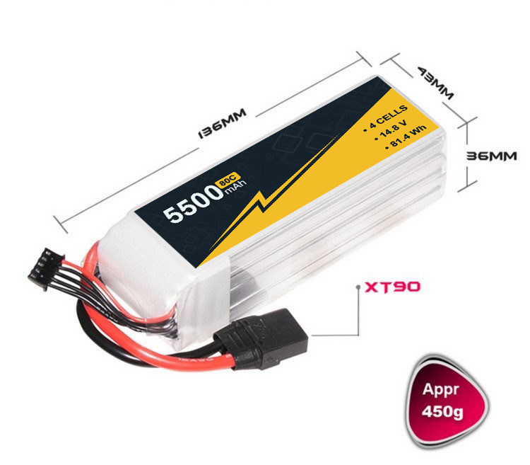 5500mAh 14,8V 4s1P Baterai Lipo 80C untuk FPV Baterai Lipo