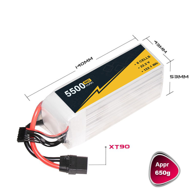 5500mAh 22.2V 6s Baterai Lipo 130C untuk FPV Baterai Lipo